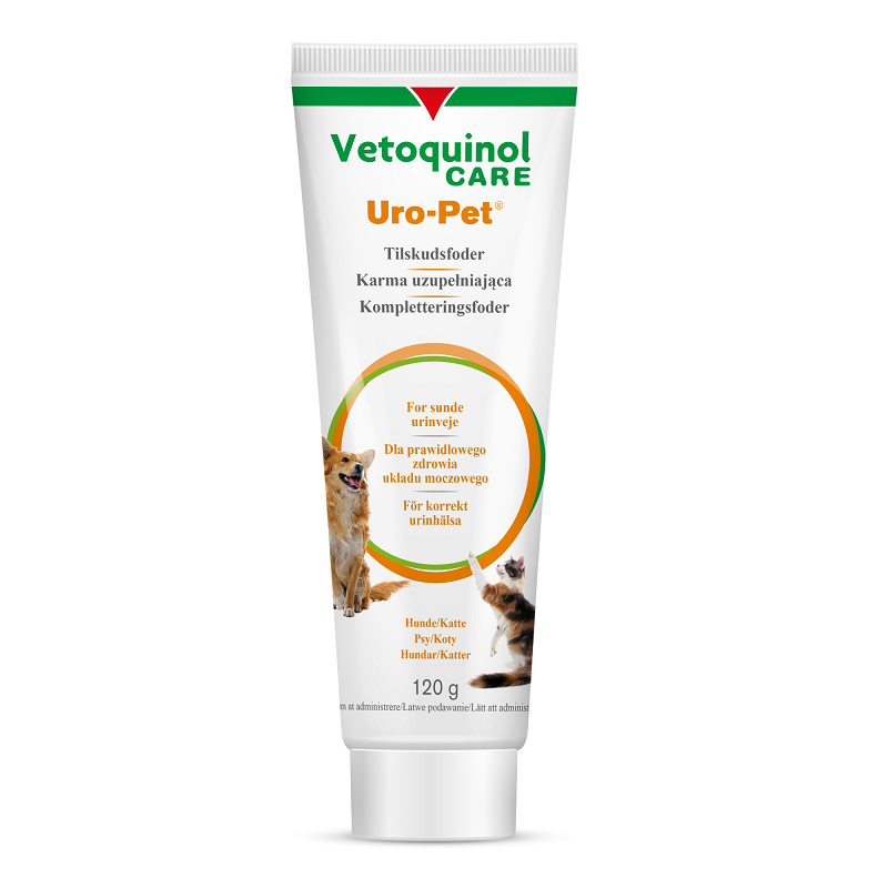 Uro-Pet® - dietetyczna karma uzupełniająca dla psów i kotów. Stosowana jest w celu zapobiegania ponownemu tworzeniu się struwitowych kamieni moczowych dzięki zawartości DL-metioniny, która ma wpływ na zakwaszenie moczu. Działa wspomagająco u kotów w chorobach dolnych dróg moczowych (dawniej Syndrom urologiczny kotów SUK) i u psów z tendencją do tworzenia struwitowych kamieni moczowych jako profilaktyka.