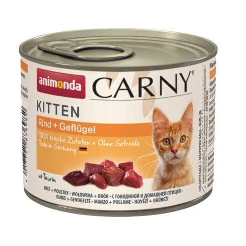 Animonda Carny Kitten to zbilansowany, smaczny i zdrowy posiłek dla kociąt, składający się z czystego mięsa najwyższej jakości. Carny Kitten z pysznymi, małymi, mięsistymi kawałkami jest specjalnie dostosowany do wymagań żywieniowych rosnących kotów w pierwszym roku życia.