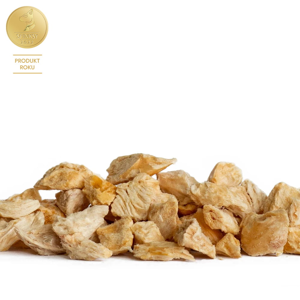 Liofilizowane kawałki mięsa idealnie sprawdzą się jako przysmak lub urozmaicenie codziennej kociej diety. Są odpowiednie również dla kociąt.