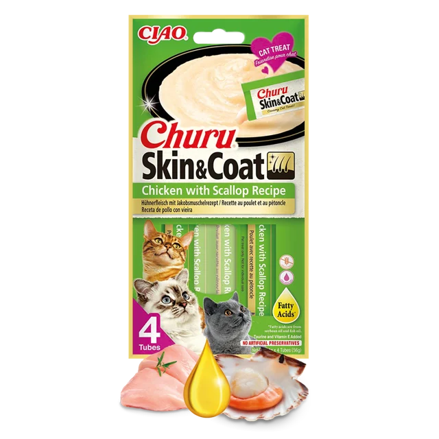 Inaba Cat Churu Skin&Coat Chicken Scallop 4x14g (56g)