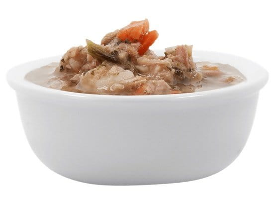 Bulion z tuńczyka 56,5%, filet z tuńczyka 38%, ziemniak 2%, skrobia z tapioki 1,5%, marchew 1,4%, brokuły 0,6%