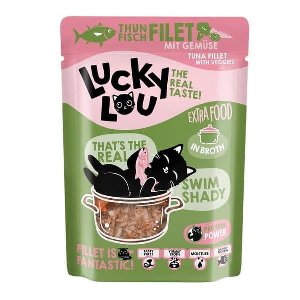 Koty, lubią być rozpieszczane. Też lubisz od czasu do czasu prawdziwą ucztę, prawda? Dokładnie tak samo jest z kotami. Kochają dodatki! I dlatego do linii karm mokrych dodaliśmy Lucky Lou Extra Food. To soczysty filet przygotowany w galarecie lub w bulionie. To jest ekstra pyszne!