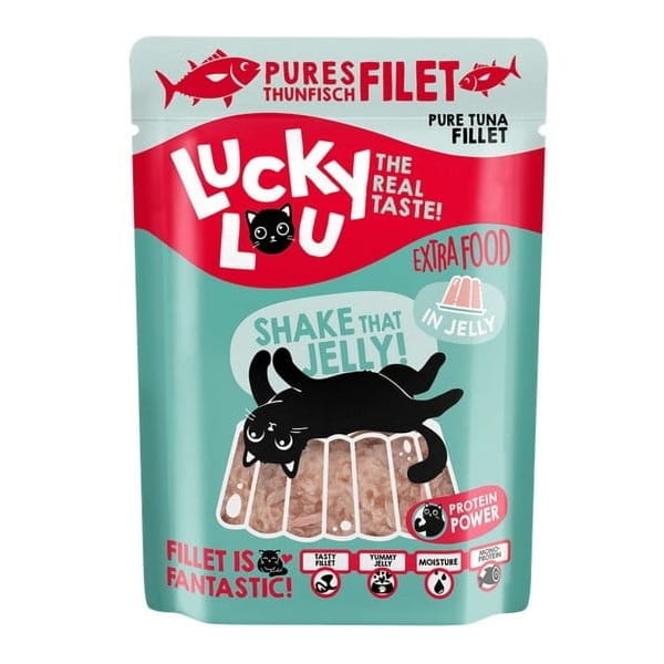 Koty, lubią być rozpieszczane. Też lubisz od czasu do czasu prawdziwą ucztę, prawda? Dokładnie tak samo jest z kotami. Kochają dodatki! I dlatego do linii karm mokrych dodaliśmy Lucky Lou Extra Food. To soczysty filet przygotowany w galarecie lub w bulionie. To jest ekstra pyszne!