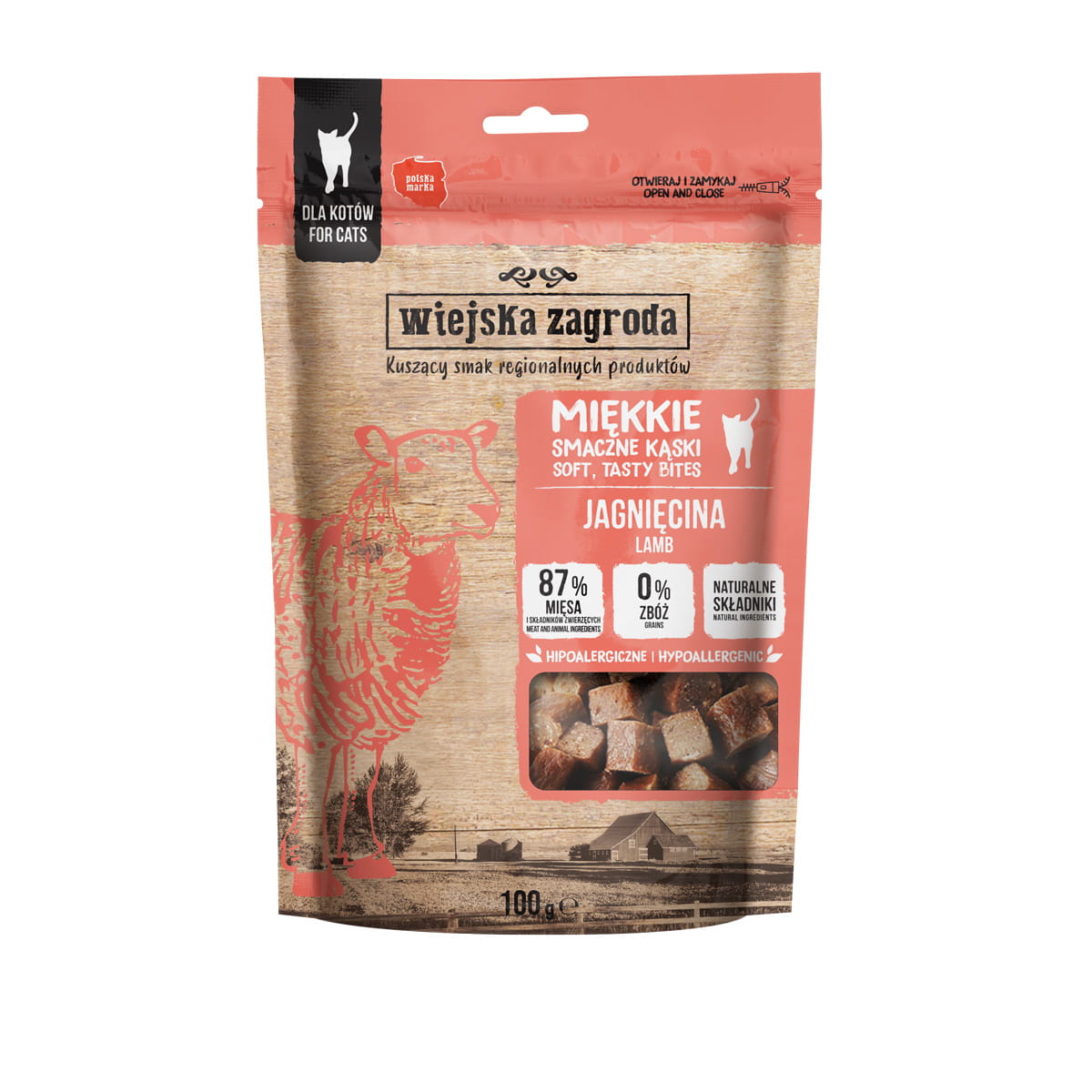 PRZYSMAKI DLA KOTA MIĘKKIE, SMACZNE KĄSKI WIEJSKA ZAGRODA – JAGNIĘCINA 100G