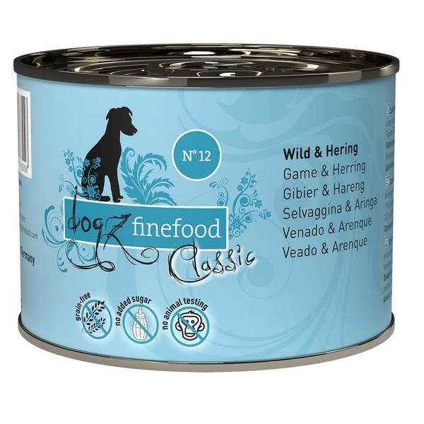 Dogz Finefood Classic N.12 Dziczyzna i śledź puszka 200g