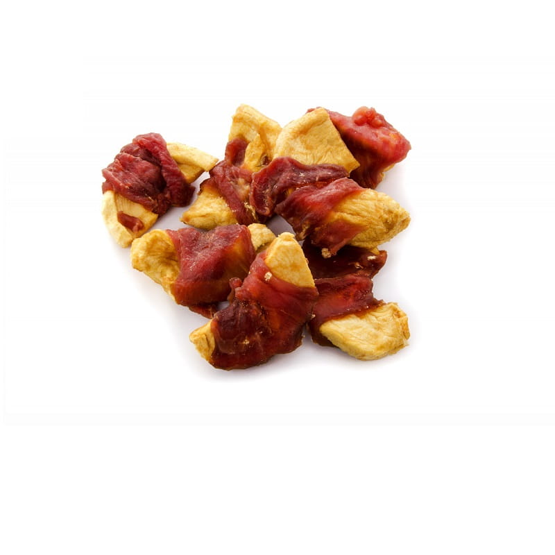Skład: mięso z kaczki, plasterki jabłka, gliceryna, sorbitol, białko roślinne, skrobia kukurydziane, sorbinian potasu, sól.