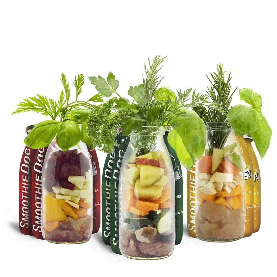 SmoothieDog jest w 100% naturalny i w 100% z transparentną deklaracją. Mięso, warzywa, owoce, superfoods i zioła - i tylko 120 kalorii! Płynna konsystencja sprawia, że smoothie nie jest ciężkie dla żołądka, zapewnia natychmiastowe nawodnienie i nową energię.