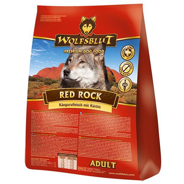 WOLFSBLUT RED ROCK to sucha kompletna karma dla psów wszystkich ras z mięsa kangura, dyni i batatów. To unikalne połączenie 30% mięsa z kangura i wybranych roślin leczniczych, z wód, lasów i łąk. Skład karmy łączy potrzeby żywieniowe psów z tymi ich przodków wilków. Sucha karma RED ROCK to bardzo zdrowe jedzenie dla psów w każdym wieku, które ma na celu rewitalizację i ochronę zwierzęcia.