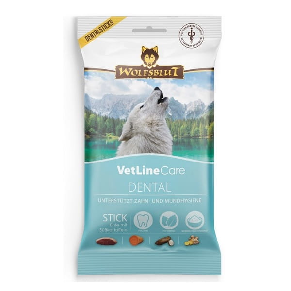 Zdrowe zęby są ważne przez całe życie. Zdrowie zębów psa odgrywa decydującą rolę w jego dobrym samopoczuciu. Zęby i dziąsła są codziennie narażone na stres, dlatego ukierunkowana pielęgnacja może pomóc utrzymać je w zdrowiu do późnej starości. Przekąska Wolfsblut VetLine Dental Stick została specjalnie opracowana jako część naszej linii VetLine Care, aby wspierać pielęgnację zębów i zapewnić świeży oddech. Ta przekąska pomaga dbać o zęby psa, zapobiega osadzaniu się kamienia nazębnego i wzmacnia dziąsła.