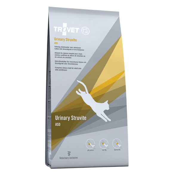 Dieta Trovet ASD charakteryzuje się obniżonym poziomem składników mineralnych wpływających na powstawanie kamieni moczowych-struvitów.