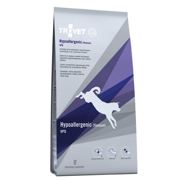 Karma Trovet VPD zawiera wyselekcjonowane białka, które powodują eliminację składników pokarmowych mogących być przyczyną alergii lub nietolerancji pokarmowej. Karma Trovet VPD jest pokarmem pełnowartościowym przygotowanym z produktów najwyższej jakości, które nie powodują alergii pokarmowej.
