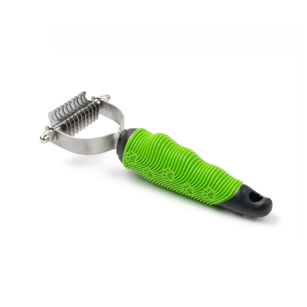 Filcak posiada profesjonalny miękki, ergonomiczny uchwyt dla maksymalnego komfortu i kontroli użytkowania. Specjalnie zaprojektowane urządzenie tnące do gruntownego usuwania martwej i matowej sierści psów i kotów. Dwanaście specjalnych noży starannie, czysto i bezpiecznie przecina zwarty podszerstek zwierząt.