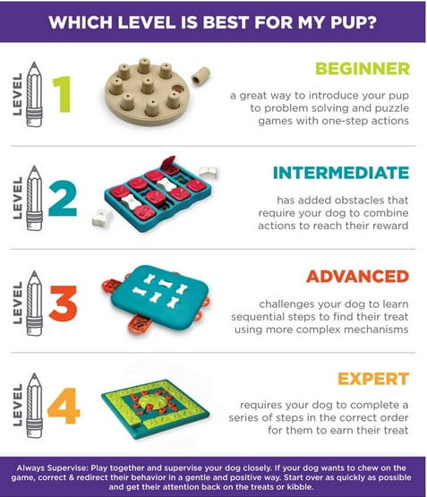Wszystkie psy mają naturalne zdolności rozwiązywania problemów i warto dostarczać im zagadki do rozwiązywania, ponieważ w przypadku psów każde 10 minut aktywności umysłowej jest równe 30 minutom aktywności fizycznej. Jako członkini rodziny Outward Hound, Nina opracowuje gry logiczne i zabawki, które ćwiczą psie ciało i umysł, eliminują nudę i pomagają hamować zachowania destrukcyjne.