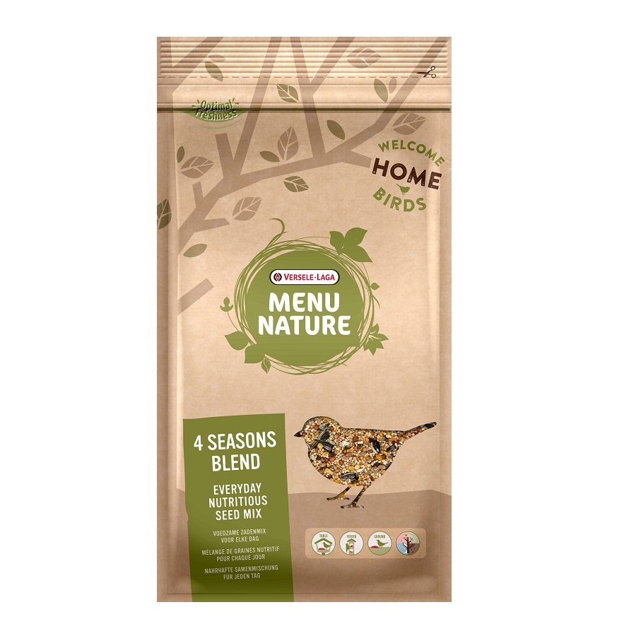Menu Nature 4 Seasons Blend to różnorodna mieszanka nasion dla dzikich ptaków o średniej zawartości białka i tłuszczu. Może być podawana przez cały rok. Ta karma przyciąga różne gatunki ptaków.